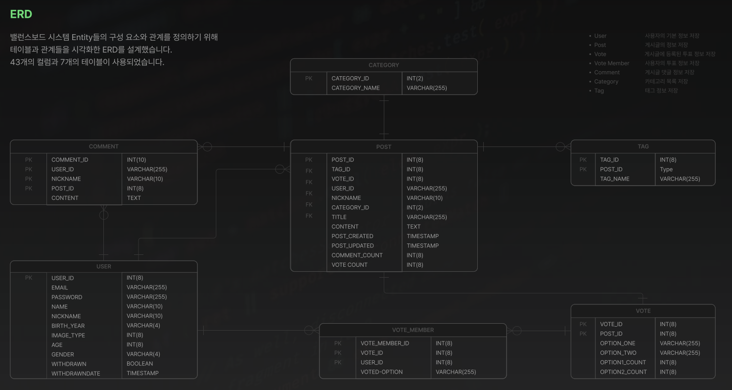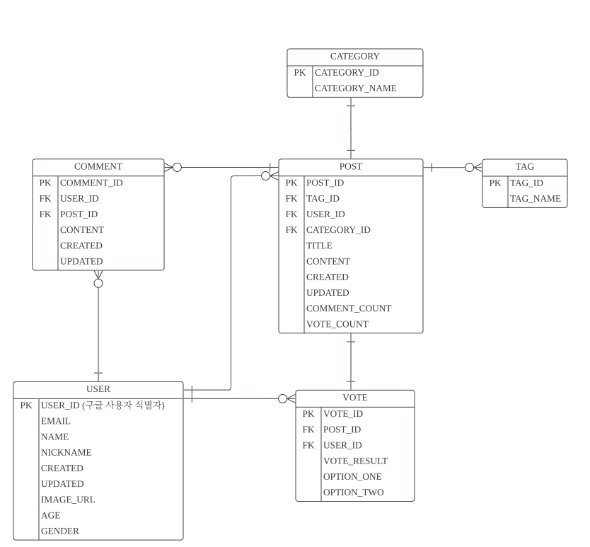 User와 Vote 사이에 다대다 관계가 필요해서, 중간 테이블(Vote_Member)을 추가하면서, Erd를 수정했습니다.