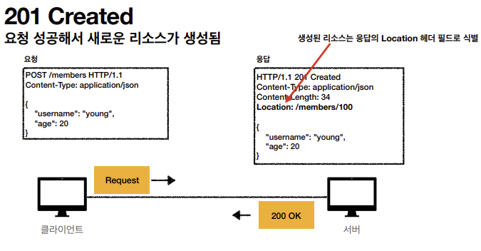 그림에서 알 수 있듯이, 생성된 리소스는 Location 헤더 필드를 통해 나타낸다.