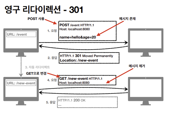 → 리다이렉트시 요청 메서드가 GET으로 변하고, 본문이 제거될 수 있음