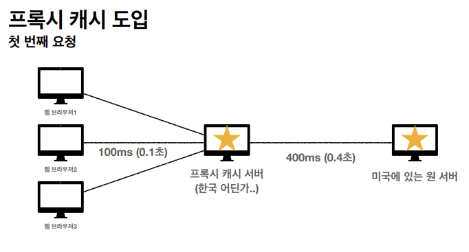 미국 원 서버에 있는 데이터를 프록시 캐시 서버가 캐시 데이터로 받아와서 이를 우리에게 뿌려준다면?