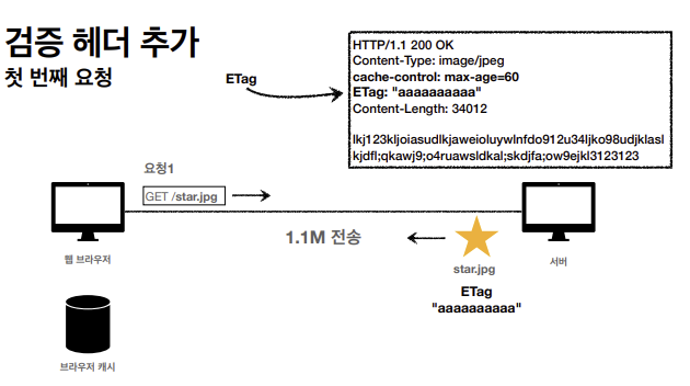 클라이언트의 데이터와 서버의 데이터가 같다는 걸 위해 검증 헤더를 HTTP 응답 헤더에 추가한다.