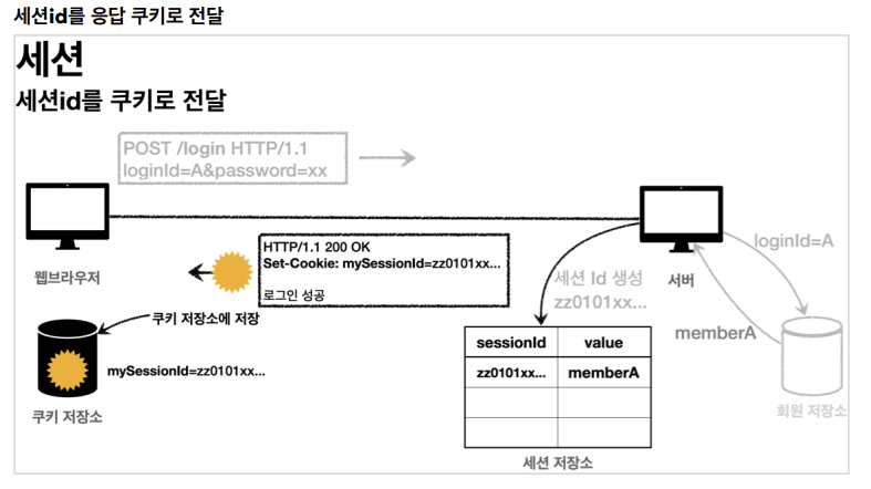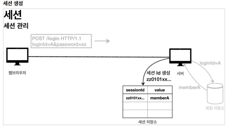 -세션 생성 (sessionId 생성, 세션 저장소에 sessionId와 보관할 값 저장, 응답 쿠키 생성해서 전달)